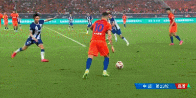 第10分钟,山东泰山左路送出传中球,费莱尼禁区内的转身低射被防守球员挡出底线。