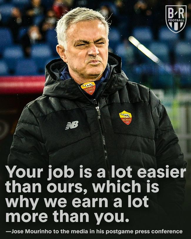 输给国米后,穆里尼奥没有多说话,他首先怼了一下记者:“你的工作比我们容易得多,这就是我们赚得比你们多的原因。”