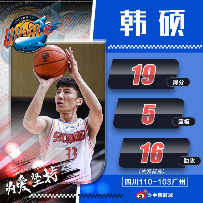 北京时间1月4日,CBA常规赛第18轮,四川110-103战胜广州。四川老将韩硕本场表现出色,送出生涯新高的16次助攻。