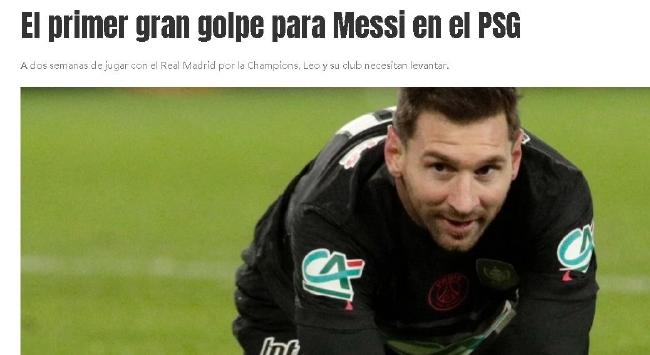 阿根廷《奥莱报》在最新的报道中表示,巴黎圣日耳曼被淘汰出法国杯,梅西遭受了加盟大巴黎后的第一次重大打击。